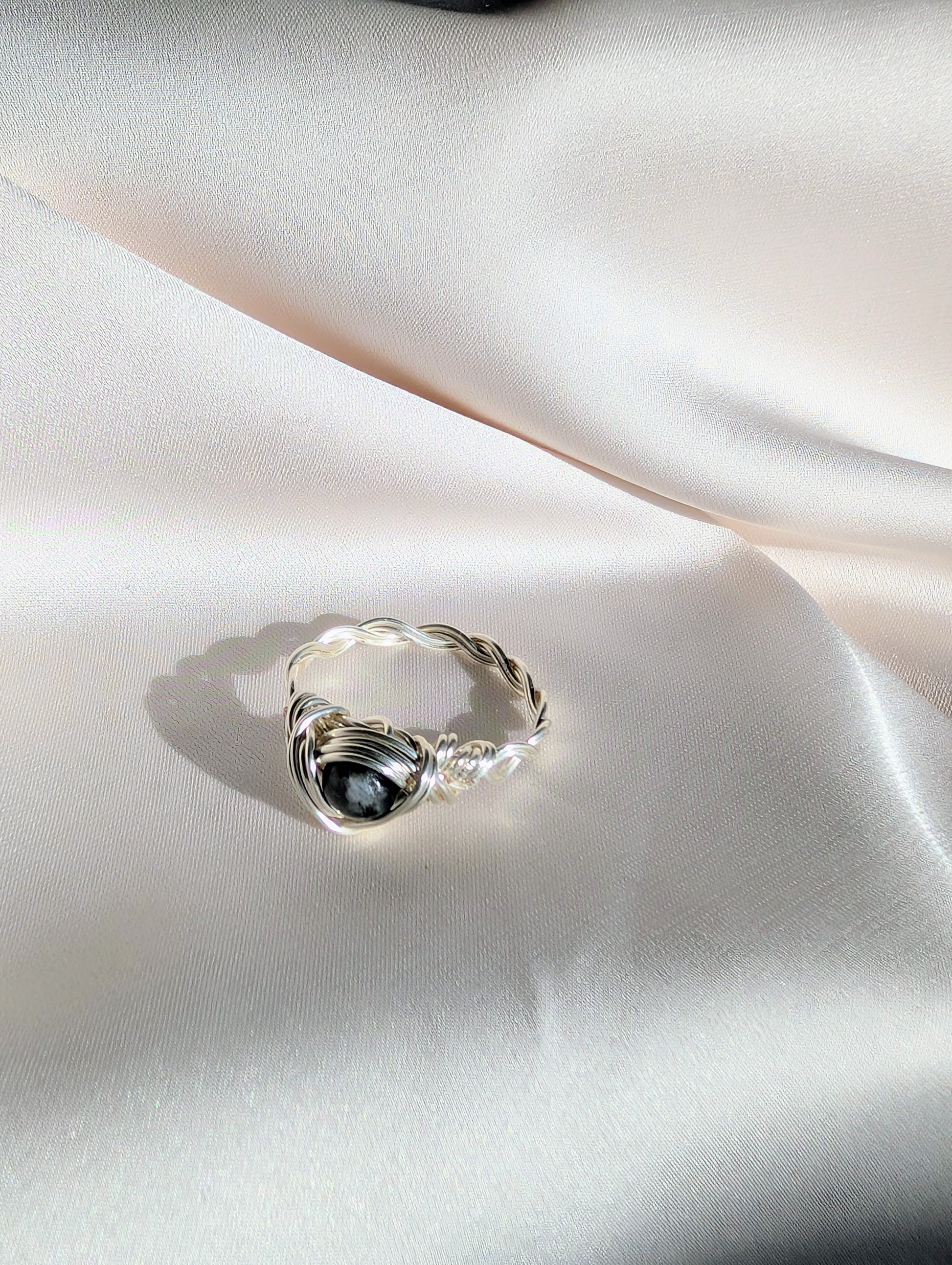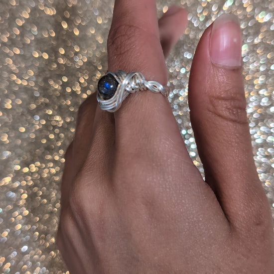 Discover the captivating allure of this Labradorite ring, featuring a shimmering bead wrapped in elegant copper wire. Choose between silver or gold plating to match your style, and select either a delicate woven band or a durable strong band for everyday wear. This ring not only enhances your look with its mystical charm but also offers lasting comfort and versatility. Elevate your accessory collection with a piece that seamlessly blends natural beauty and craftsmanship.
