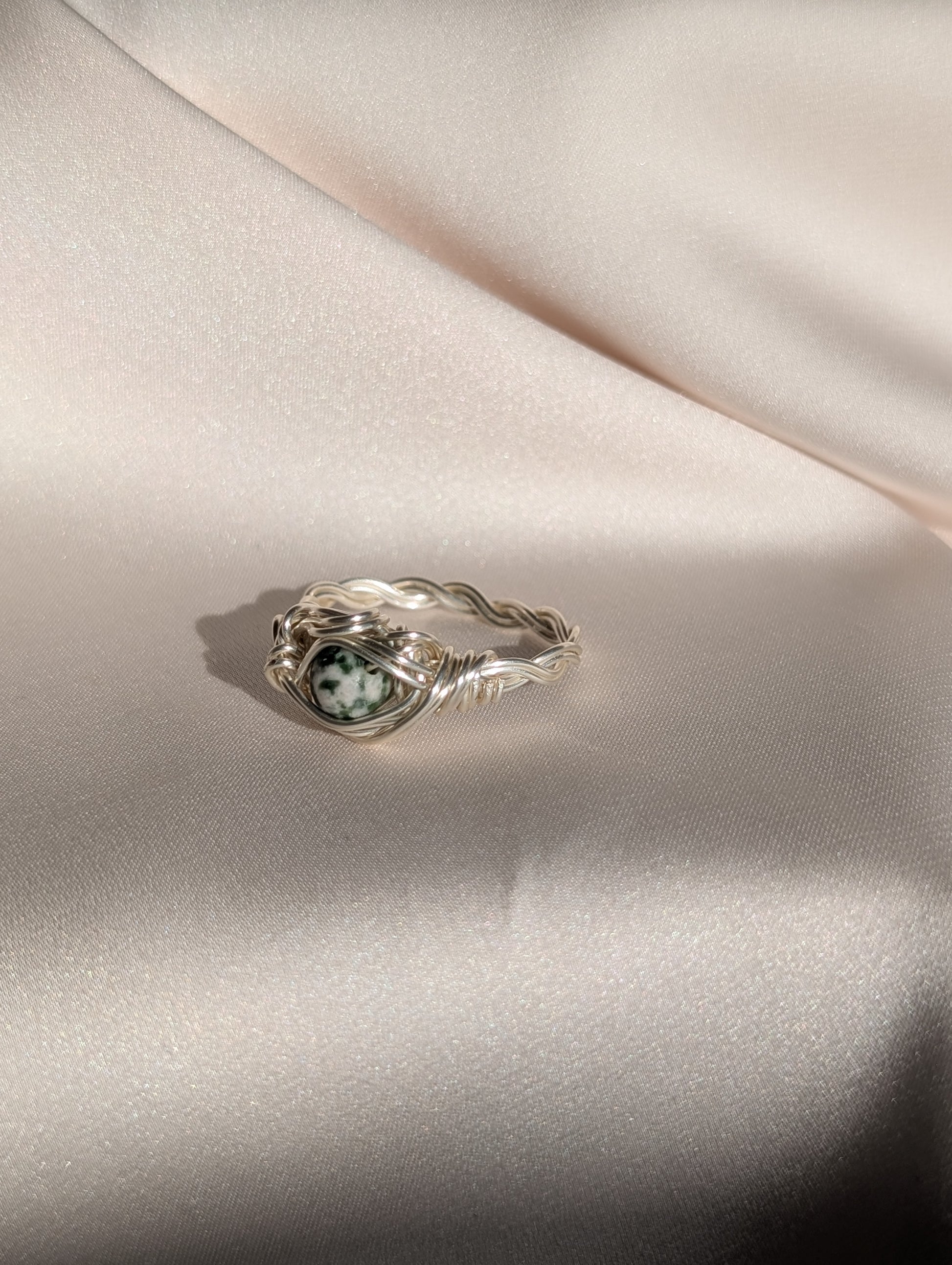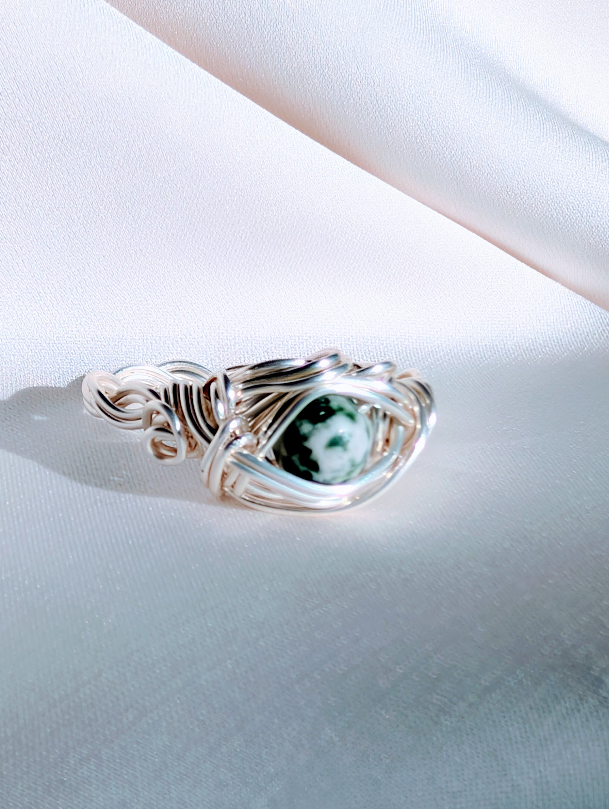 Crafted with care, this Moss Agate ring features a beautiful beadstone delicately wire wrapped to showcase the stone’s natural patterns. Known for its calming energy and connection to nature, the Moss Agate offers more than just style—it brings a sense of balance and grounding to your everyday look. Wear this unique piece to add a touch of earthy elegance and meaningful charm to any outfit.