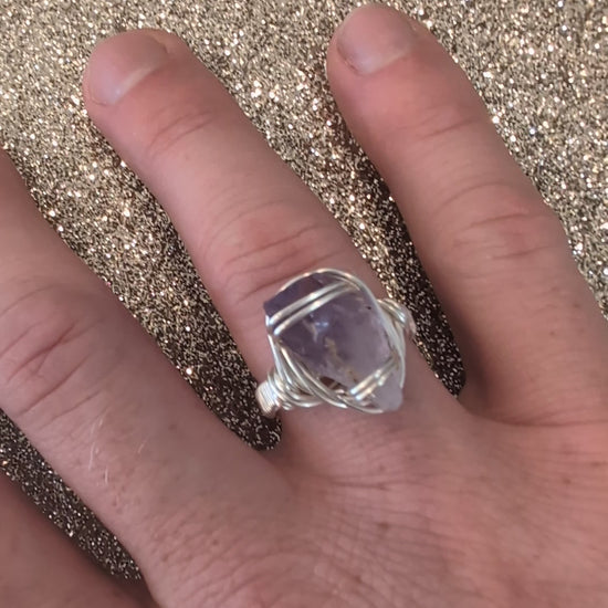 Elevate your style with this Raw Amethyst Ring, featuring a natural amethyst crystal point exquisitely wrapped in copper. Choose between elegant gold-plated or sleek silver-plated finishes to match your unique taste. This ring not only adds a touch of earthy sophistication but also brings the calming energy of amethyst close to you, making it a perfect blend of beauty and balance. Perfect for those who appreciate handcrafted, distinctive jewelry with a meaningful touch.
